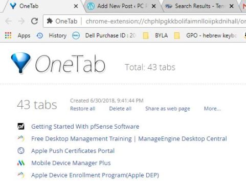 that can also help. It closes all open tabs that consolidates them on one tab as links. When you click on a link it reopens the tab and removes them from the OneTab, tab.
